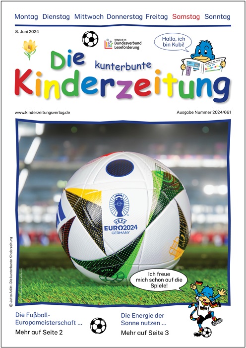 Die kunterbunte Kinderzeitung Ausgabe 2024-661, Fußball-Europameisterschaft zum Nachbestellen, inklusive Fragebogen Format: A4 Seiten: 5