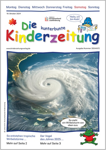 Die kunterbunte Kinderzeitung Ausgabe 2024-672, So entstehen tropische Wirbelstürme zum Nachbestellen, inklusive Fragebogen Format: A4 Seiten: 5