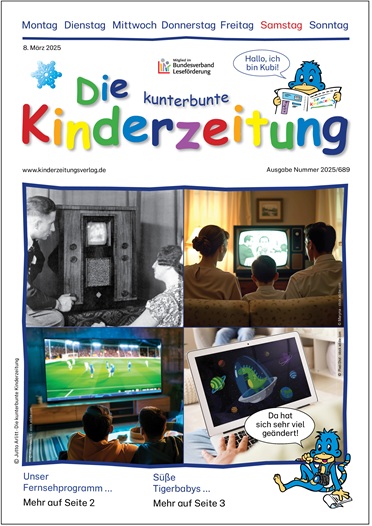 Die kunterbunte Kinderzeitung Ausgabe 2025-689, Unser Fernsehprogramm zum Nachbestellen, inklusive Fragebogen Format: A4 Seiten: 5