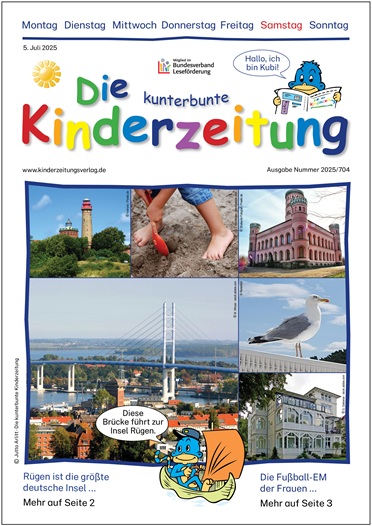 Die kunterbunte Kinderzeitung Ausgabe 2025-704, Die Insel Rügen zum Nachbestellen, inklusive Fragebogen Format: A4 Seiten: 5