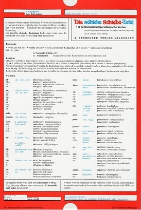 Schiebe-Tafel zum Einüben der lateinischen unregelmäßigen Verben. Durch Verschieben der Innentafel kann man selbst die Lernfortschritte kontrollieren.