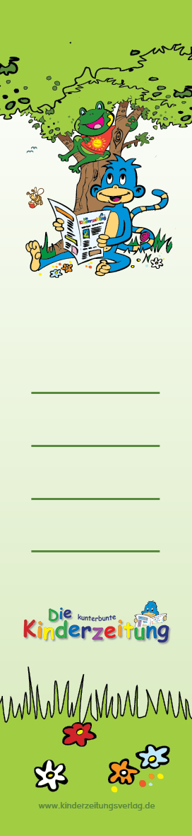 Aufkleber, Ordnerrücken für einen schmalen Ordner (4,20 cm x 19,60 cm) Kleben Sie den Ordnerrücken einfach auf einen schmalen Ordner, um die Ausgaben der kunterbunten Kinderzeitung zu sammeln.
